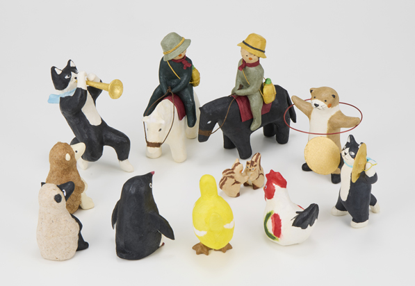 どちらも和紙を用いた粘土と張子ですが、それぞれに重い軽いの特徴があり、それを活かすことに心掛けています。